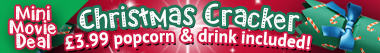 The Mini Movie Deal offers films at pocket money prices! All tickets £3.99* which includes a mini popcorn and drink. Or £2.50* for the film only. Booking fees apply to bookings made online or by phone.